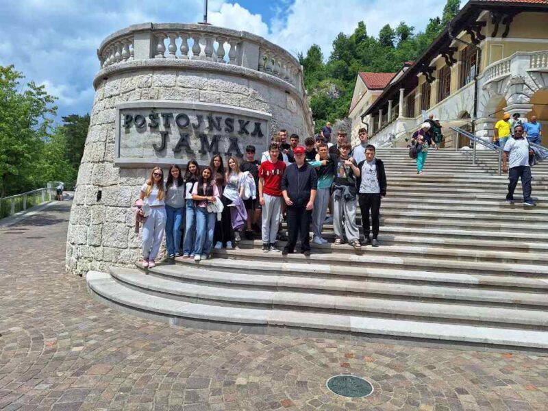 Prva destinacija bila je čuvena Postojnska jama, jedna od najimpresivnijih svjetskih spilja, duga čak 21 kilometar. Učenici su uživali u vožnji podzemnim vlakićem i šetnji kroz raskošne dvorane prepune siga, uz stručno vodstvo putem audio vodiča na hrvatskom jeziku. Poseban interes izazvao je susret s čovječjom ribicom – endemskom vrstom koja živi isključivo u podzemnim vodama Dinarskog krša.
