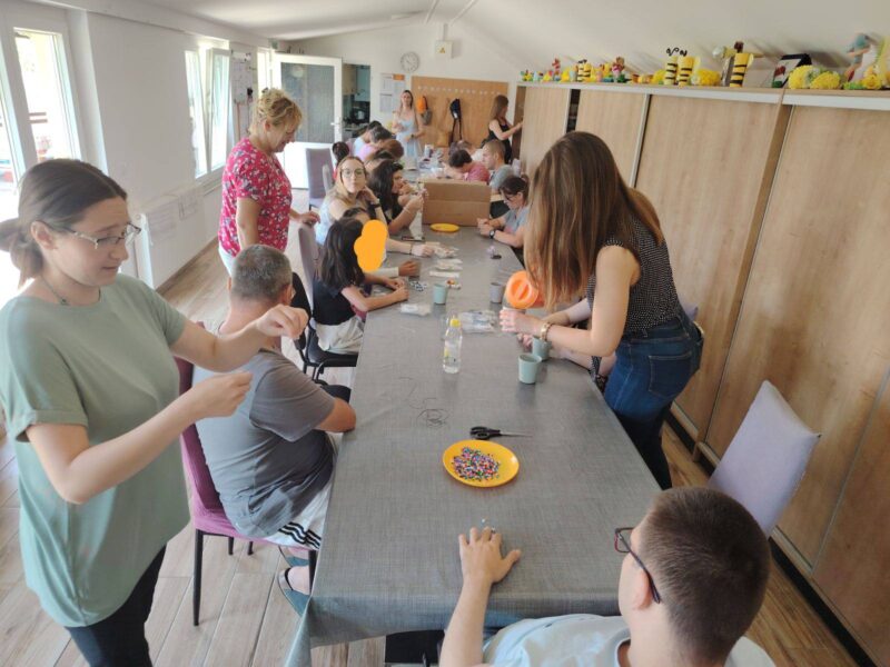 Vrata Udruge bila su širom otvorena za sve posjetitelje, a sve korisnike je najviše razveselio dolazak djece iz Dječjeg doma sv. Marka Križevčanina. Pridružile su se i stručne suradnice iz Zavoda za socijalnu skrb Područnog ureda Križevci te mame korisnika i volonterke. Radionica je protekla uz pjesmu u veselom raspoloženju u zajedništvu i podršci.