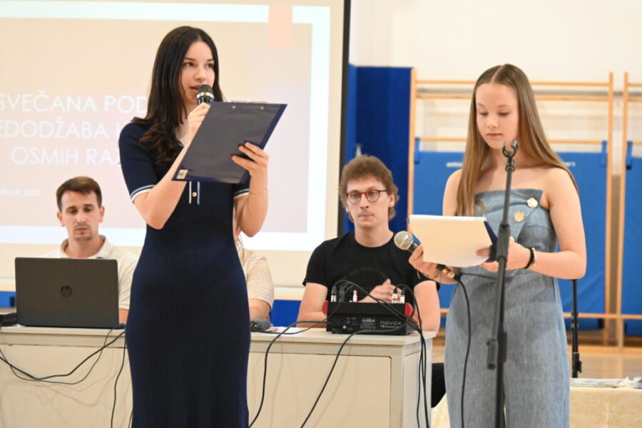 Svečano je bilo u utorak u sportskoj dvorani Osnovne škole Ljudevita Modeca u Križevcima. Osmašima su uručene svjedodžbe i nagrade, a i učitelji su primili cvijeće i prigodne poklone od učenika.