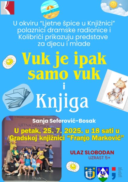 Dvije zabavne i poučne predstave pripremili su polaznici ljetne dramske radionice i članovi Dramske družine “Kolibrići” (autorica teksta Sanja Seferović- Bosak, obrada teksta i glazbe mladi glumci i voditeljica).