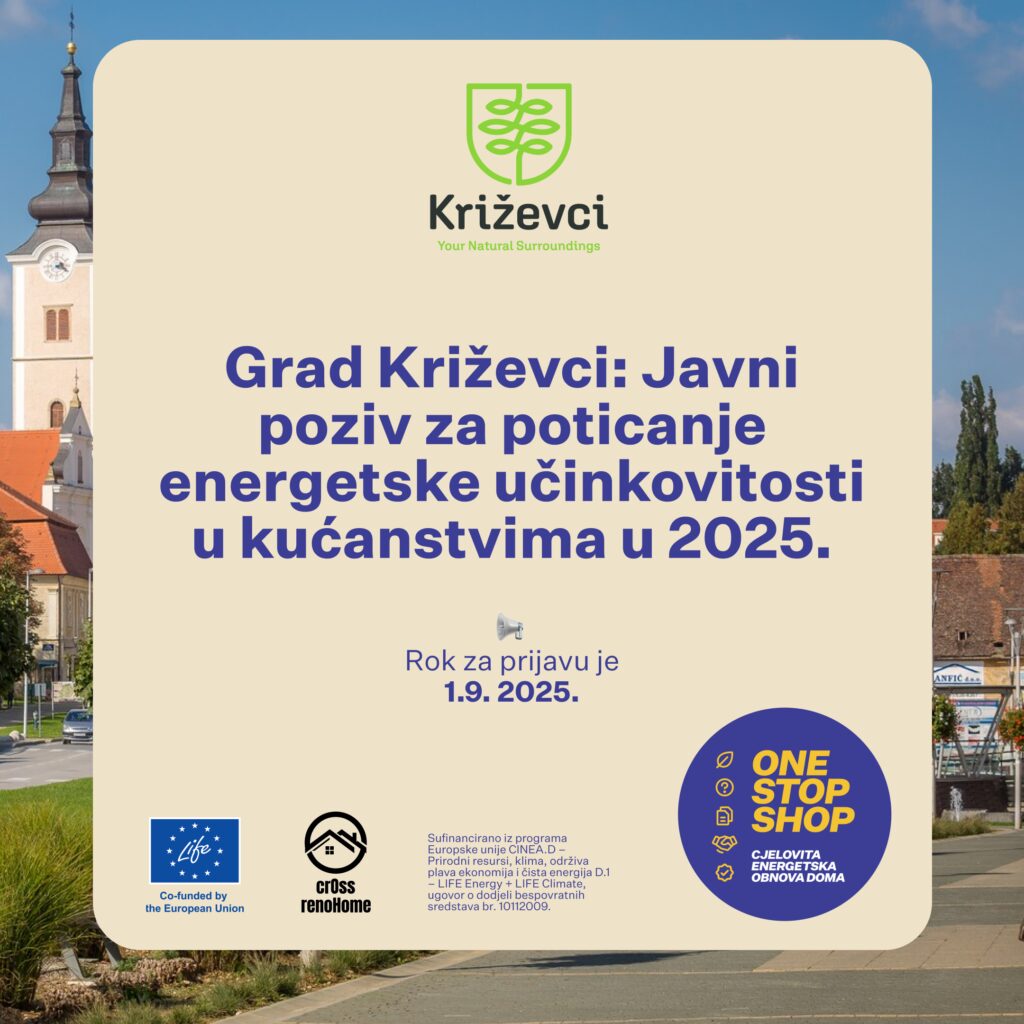 Putem ovog javnog poziva, građani Križevaca i pripadajućih naselja mogu dobiti 80% sufinanciranja izrade glavnog projekta sunčane elektrane te 50% ili do 80% sufinanciranje ugradnje elektrane. Osim toga, građani koji spadaju u energetski ranjivu kategoriju mogu ostvariti 100% financiranje toplinske izolacije tavana staklenom vunom.