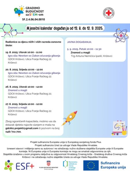 Od 13. kolovoza do 12. rujna 2025. djeca vrtićke i osnovnoškolske dobi moći će istražiti svijet znanosti, tehnologije, inženjerstva i matematike kroz zabavne, interaktivne i edukativne aktivnosti.
