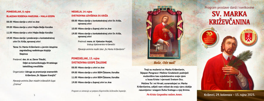 Proslava sv. Marka Križevčanina održava se u znaku 30. obljetnice svečeve kanonizacije te 15. obljetnice uspostave Bjelovarsko-križevačke biskupije.