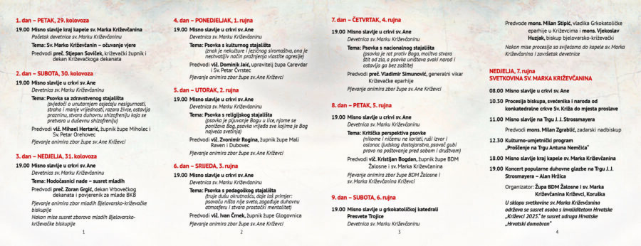 Svetkovina sv. Marka Križevčanina svečano će biti proslavljena u svečevu rodnom gradu Križevcima u nedjelju 7. rujna 2025. Euharistiju će predvoditi zadarski nadbiskup mons. Milan Zgrablić. Slavlje će biti održano na Trgu J. J. Strossmayera u središtu grada, a početak je u 11 sati.