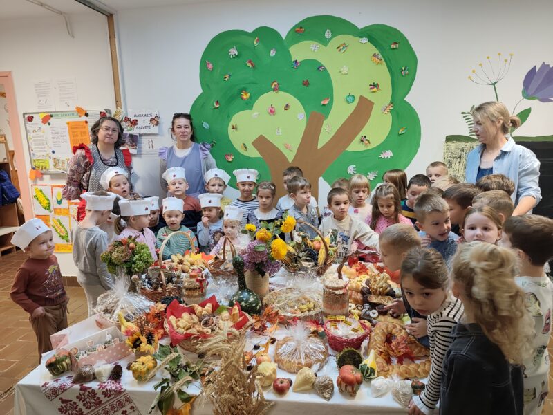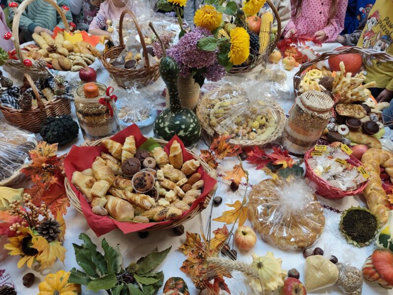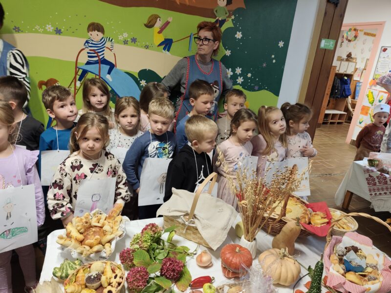 Djeca su donijela pekarske proizvode koje su dan ranije pripremili sa svojim roditeljima te ih danas izložili u vrtiću. Dane kruhe obogatili su i pjesmom i recitacijama.