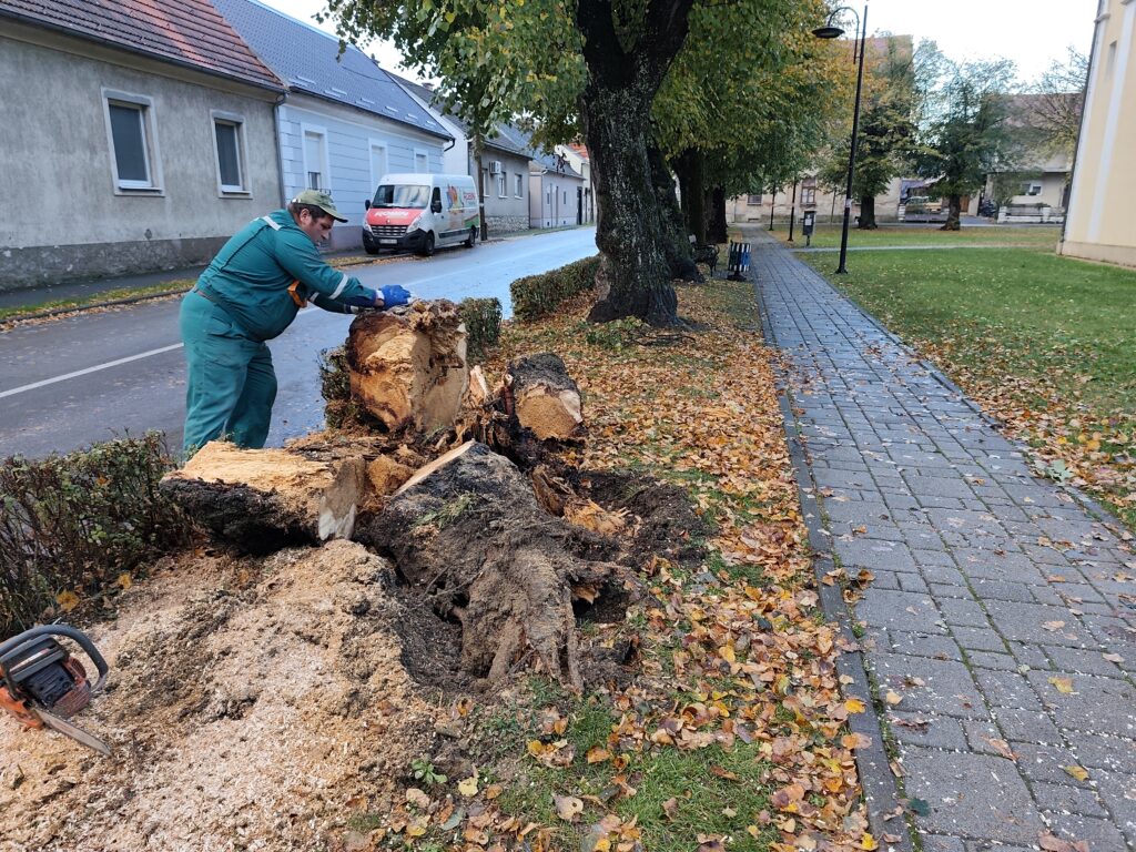 Na Trgu Ivana Mažuranića u Križevcima u noći je zbog jakog vjetra palo stablo. Stablo je bilo trulo iznutra i vjetar ga je srušio.