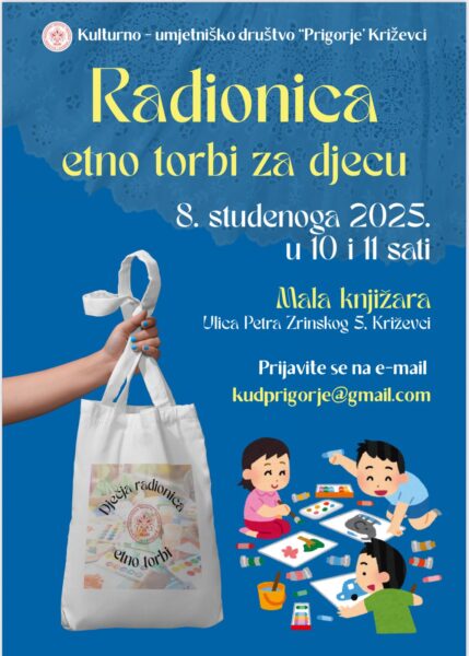 Radionica će se održati 8. studenog u 10 i 11 sati u Maloj Knjižari, ul. Petra Zrinskog 5 Križevci.
