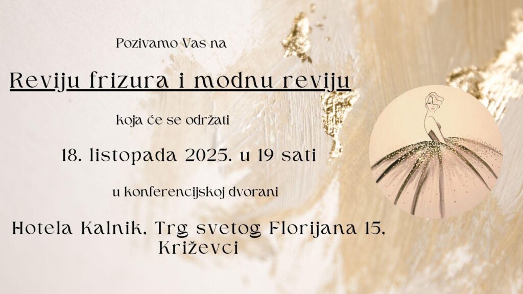 U sklopu 27. Obrtničkog i gospodarskog sajma Koprivničko Križevačke županije održat će se tradicionalna revija frizura i modna revija. Događanje će se po prvi puta održati u konferencijskoj dvorani Hotela Kalnik u subotu 18.10.2025. s početkom u 19,00 sati čime večer dobiva dodatnu notu elegancije i svečanosti.