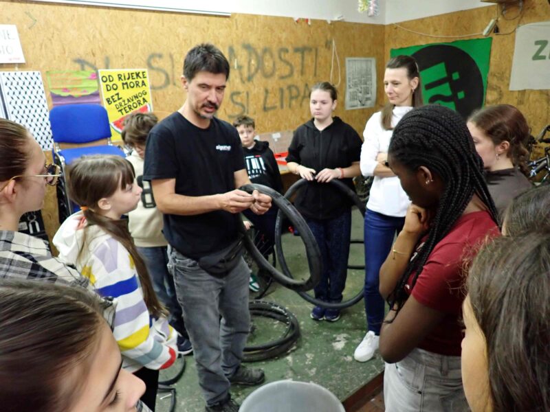 kako zakrpati gumu na biciklu. To ih je učio Eugen Vuković. Valentina Keblar, vlasnica tvrtke Unija