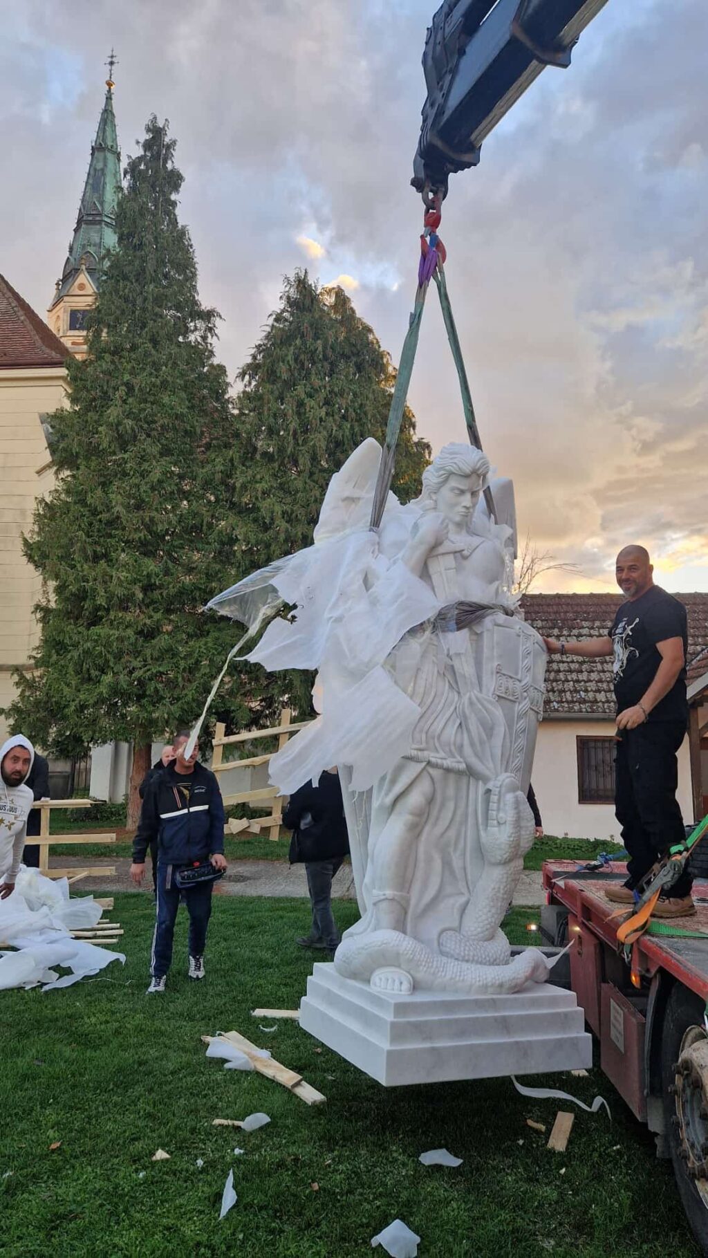 Jedan od kipova sv. Mihaela arkanđela stigao je i u Križevce i trenutno je postavljen u dvorište katedrale Presvete Trojice gdje će i ostati. Kip je donijela zajednica Marijinih ratnika koji su posjetili i katedralu te relikvije svetog Šarbela koje su izložene u njoj.