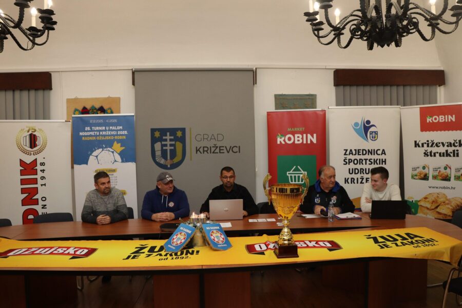 U prostorijama male vijećnice Grada Križevaca u utorak, 9. prosinca izvučene su skupine 25. izdanja turnira u malom nogometu Križevci 2025 Radnik-Ožujsko-Robin i 7. turnira županijskih klubova Radnik-Ožujsko-Robin.
