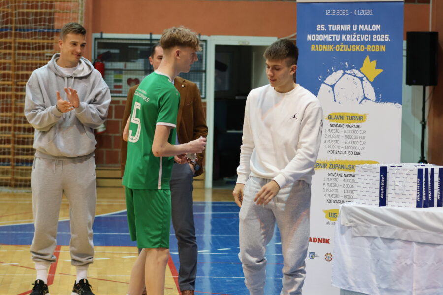 Turnir “Antun Tina Bednaić” igra se u sklopu malonogometnog turnira Radnik-Ožujsko-Robin 2025. i namijenjen je igračima koji su prerasli U14 ali još nisu spremni za seniorske i županijske turnire. Organizatori ovime pružaju priliku mladim igračima i školama nogometa da osjete i uživaju u atmosferi velikog malonogometnog turnira s punim tribinama i glasnom podrškom navijača. Pehare najboljim ekipama uručio je direktor turnira Damir Kemenović.