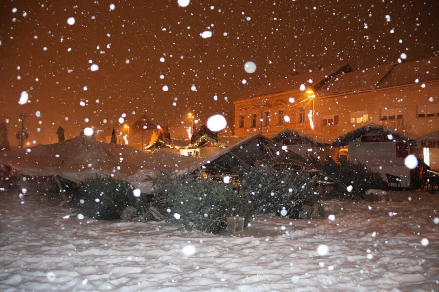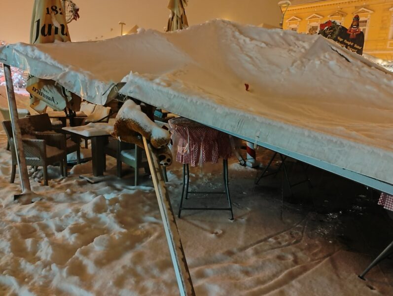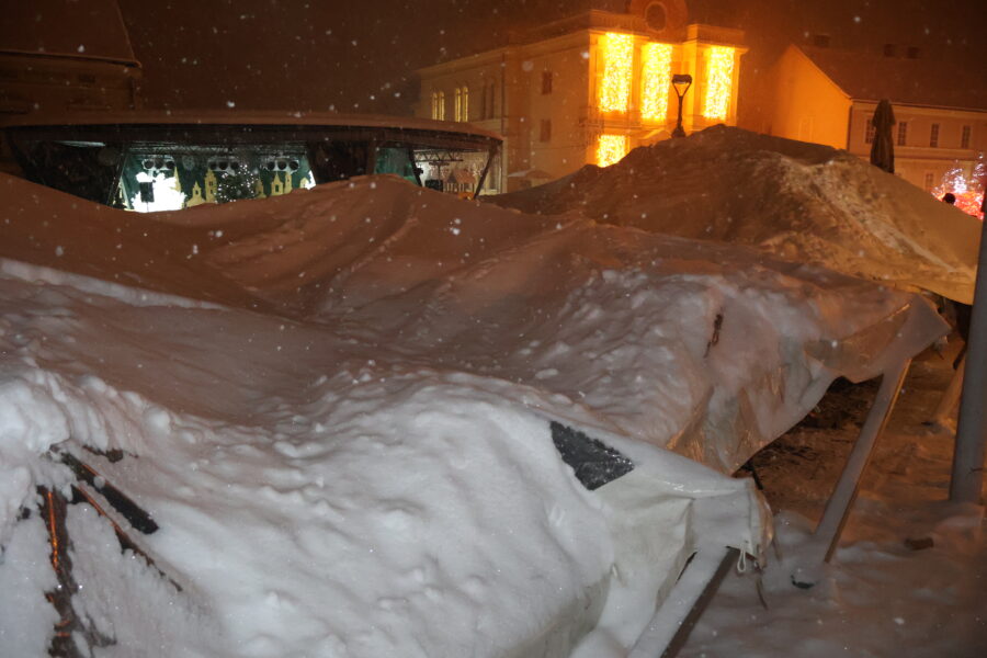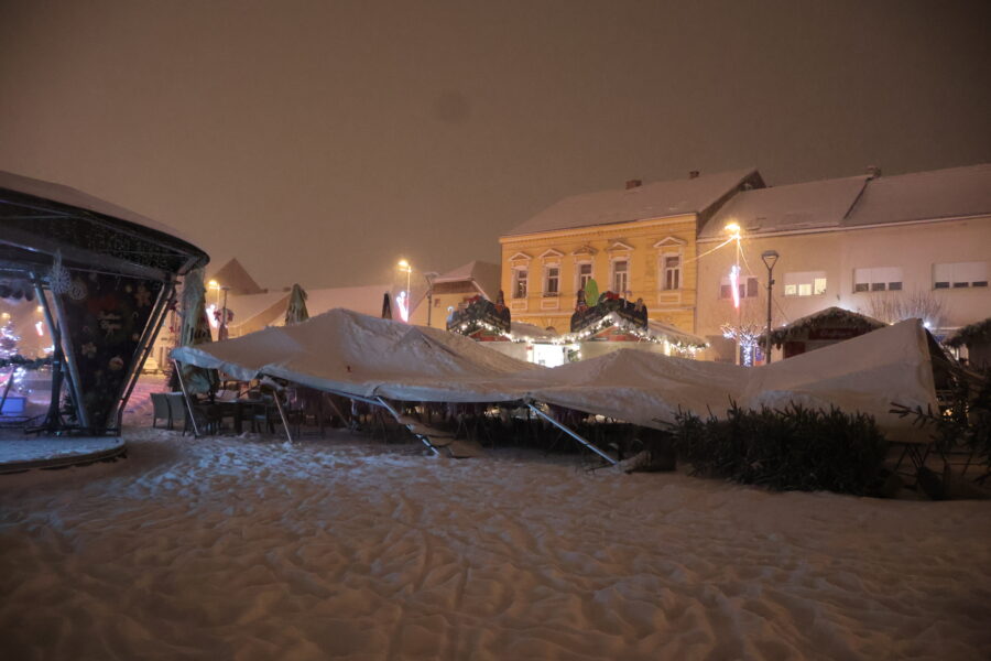 Uslijed velikih količina snijega koje su pale u proteklim satima u Križevcima, šator postavljen na Strossmayerovom trgu urušio se zbog težine snijega. Nitko od petnaestak osoba koje su bile pod šatorom nije ozlijeđen. Nekoliko građana ostalo je pod šatorom kad se urušio, ali srećom ni oni nisu ozlijeđeni.