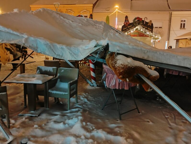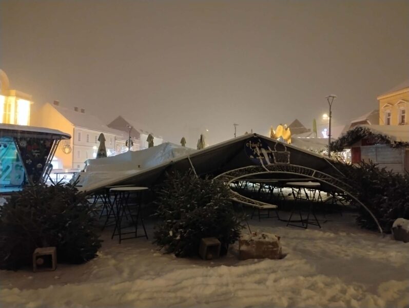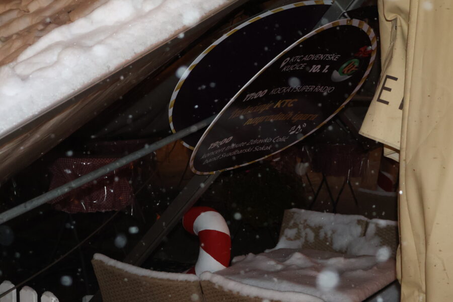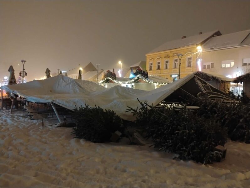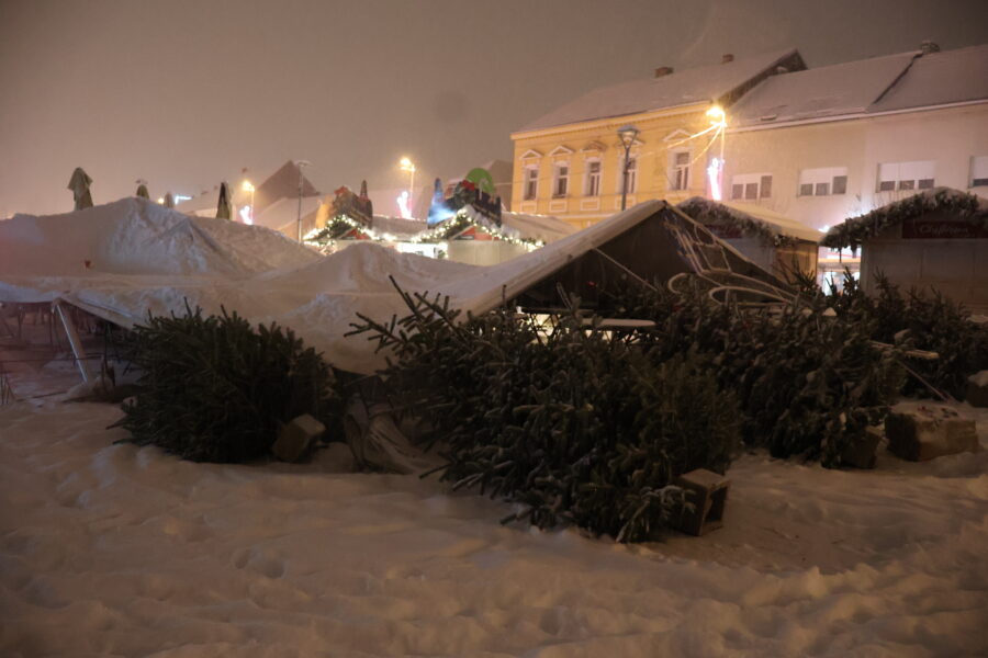 “Čulo se krckanje, šator se nagnuo i viknuo sam ljudima da se maknu, izađu iz šatora“, rekao nam je zamjenik gradonačelnika Ivica Švagelj koji je u tom trenutku bio u šatoru. Zahvaljujući brzoj reakciji, spriječena je moguća nesreća i šteta je samo materijalna. Metalna konstrukcija se savinula i na mjestima puknula, srušeni su ukrasi i borovi koji su se nalazili uz šator.