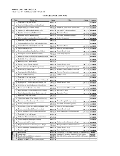 Tjedni jelovnik Restorana Klara