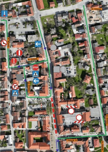 Iz smjera centra prema gornjem gradu, promet je dopušten Strossmayerovim i Nemčićevim trgom do Baltićeve ulice pa Svetokriškom i Potočkom do semafora i križanja s Franje Račkoga. Po završetku radova, dio prometnice u Zakmardijevoj ulici pušta se u promet. Građane molimo da prate privremenu prometnu signalizaciju.