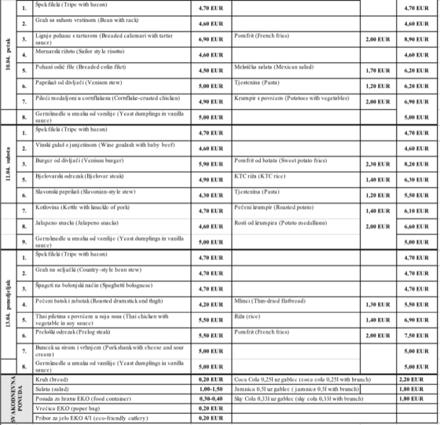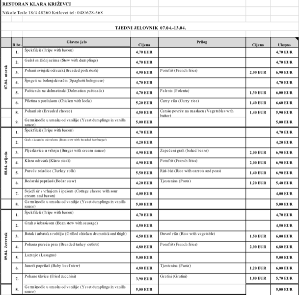 • Restoran Klara – tjedni jelovnik 7. do 13. travnja